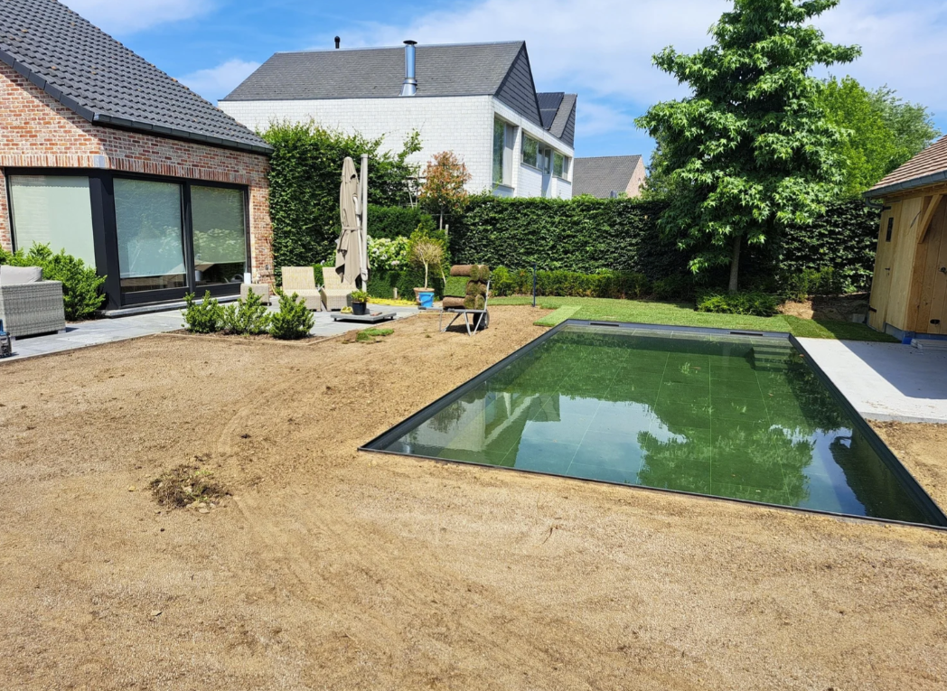Om desondanks in de zomer nog te kunnen genieten van een weelderig groen gazon, werd besloten om het grasveld opnieuw aan te leggen met grasmatten (ook wel graszoden genoemd). De ondergrond op deze locatie bleek echter arm aan voedingsstoffen en had moeite om vocht vast te houden. Daarom kozen we voor bodemverbetering met: