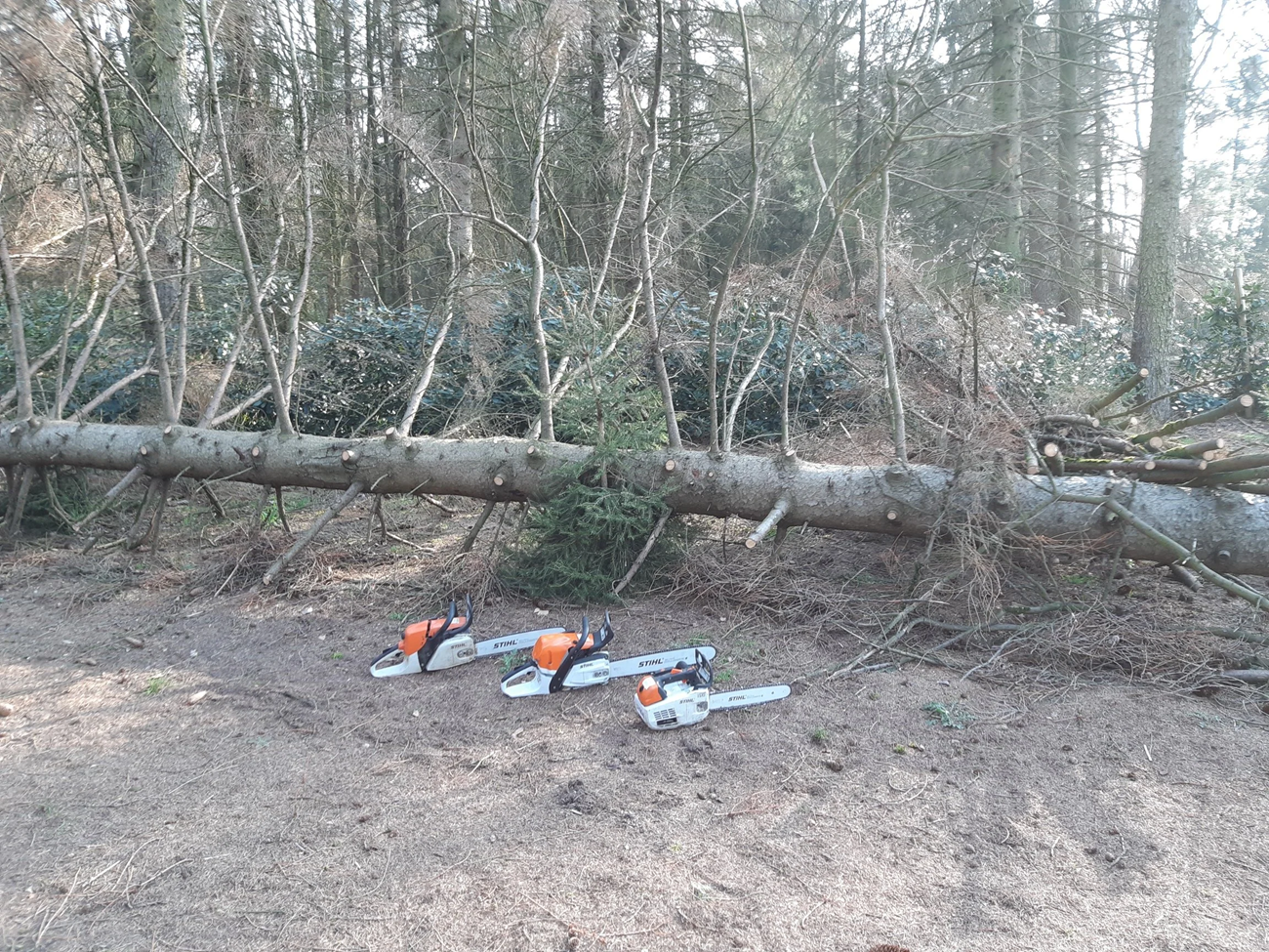 Gedurende een krachtige storm is er een boom omgevallen in een gebied met weelderige begroeiing bij een klant.